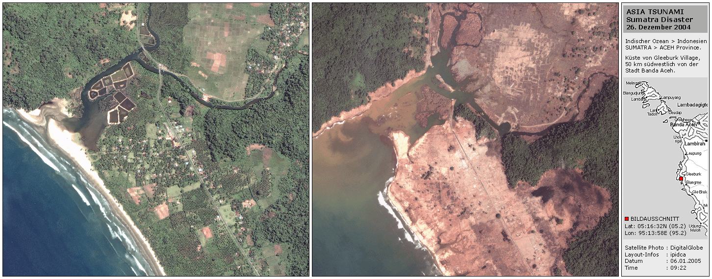 Unsere Gedanken sind mit den Opfern der Weihnachtsflut vom 26. Dezember 2004 in Südostasien. Ausgelöst durch das [Erdbeben] an der Nordwestküste Sumatras, wo die indisch-australisch-ozeanische [Platte] auf die eurasische (indochinesisch-asiatische) Kontinentplatte stößt. Notiz am Rande: Am 26. August 1883 explodierte der Feuerberg